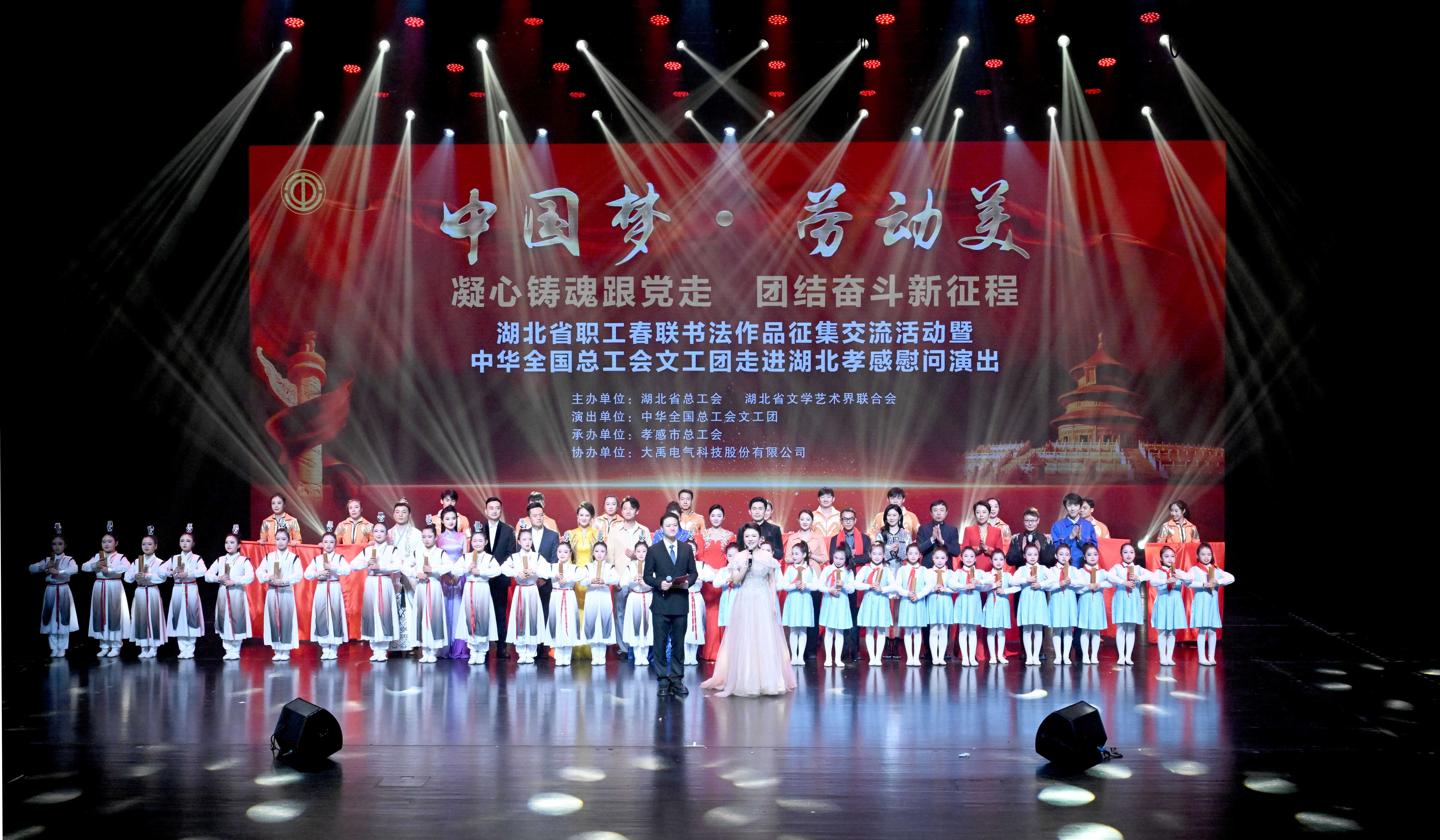 2月5日,“翰墨迎新春 匠心颂荆楚”湖北省职工春联书法作品征集交流活动在孝感市文化中心拉开帷幕。活动汇集全省职工书法爱好者近800副优秀春联作品,并同步举行全国总工会文工团慰问演出,为职工群众呈现了一场兼具传统韵味、地域特色与劳动情怀的新春文化盛宴。