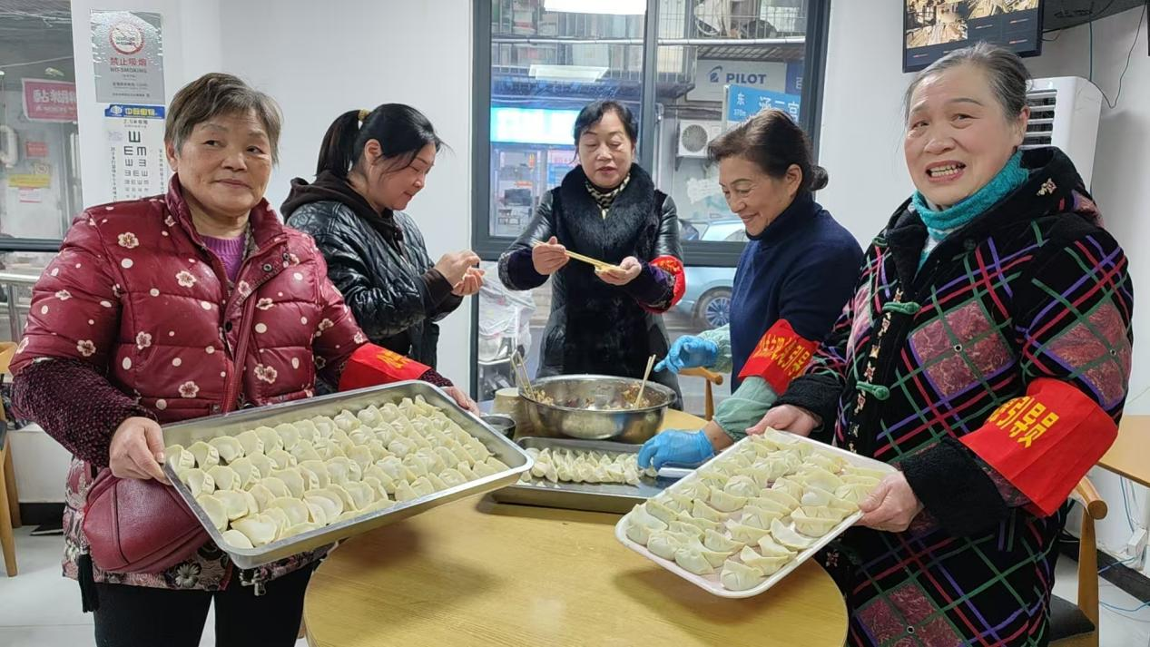 “既然老人不方便做饭,咱们就帮她把肉做成饺子!”活动中心工作人员了解情况后,当即决定发起“饺子行动”。消息在社区传开,居民志愿者纷纷响应。揉面、擀皮、包饺子……在老年活动中心,一场“饺子流水线”迅速运转起来。大家分工协作,手法娴熟,欢声笑语中,一盘盘饱满的饺子摆满了托盘。