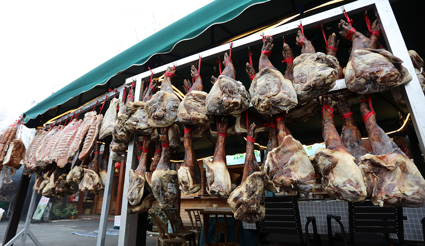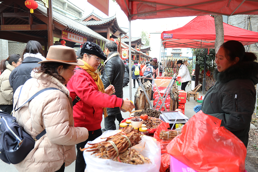 “莫笑农家腊酒浑,丰年留客足鸡豚。”农历小年前夕,襄阳谷城县五山镇堰河村民俗园里年味浓厚,农户门前挂满腊蹄、鱼干、风干鸡等特色年货,店铺内各类干货和山货琳琅满目,成群游客慕名而来“打年货”,土特产销量爆发式增长。