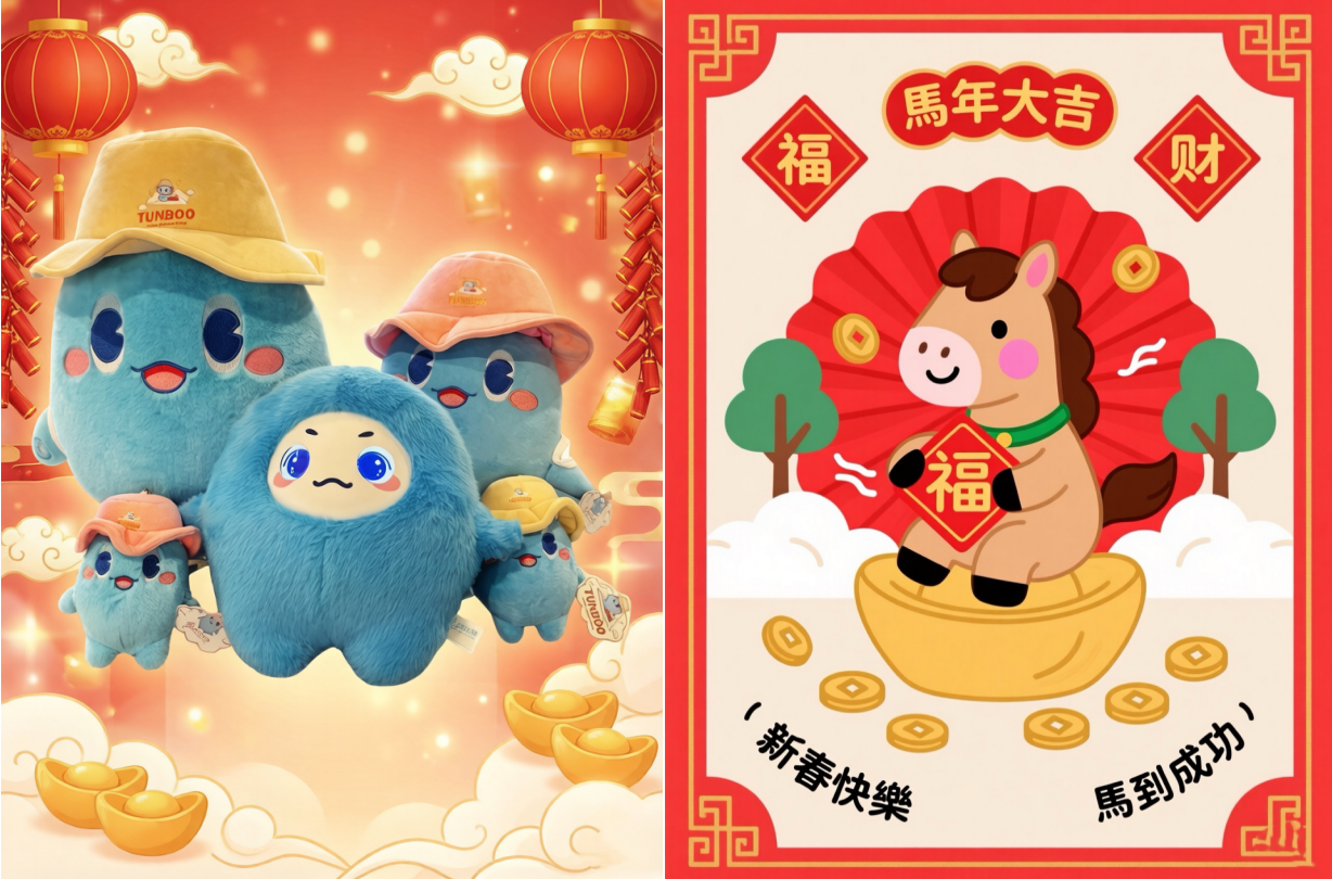 有AI玩偶,有零食年货大礼包,还有马年钥匙扣等惊喜文创。