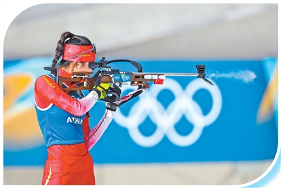 当地时间2月6日,中国冬季两项队选手褚源蒙在赛前训练。新华社记者 江 汉摄