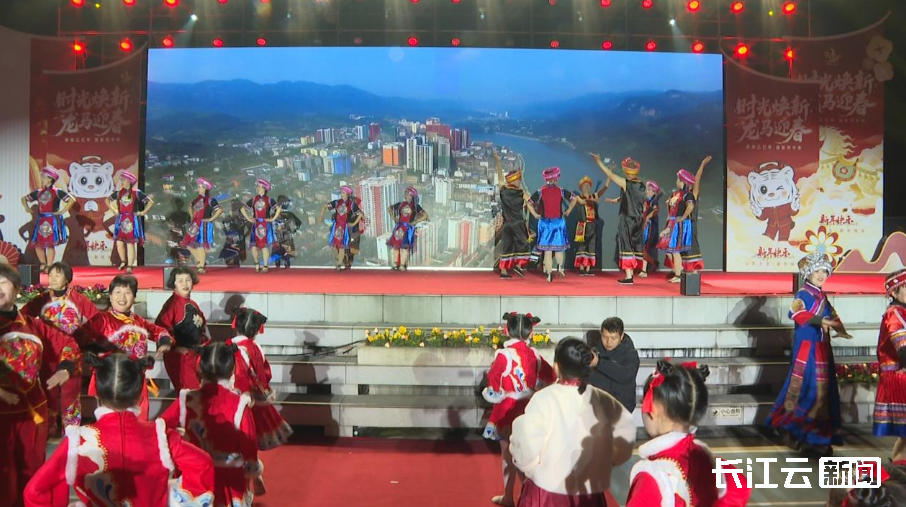 舞台上,“小马驹”们踏着欢快的节奏叩开马年大门;人民群众身着节日盛装,在夷水之滨演绎“龙舟竞渡”的壮阔;高亢的山歌,响彻云霄,流淌着千年乡愁;巴山舞悠扬,欢快多姿,舞出幸福比天长。