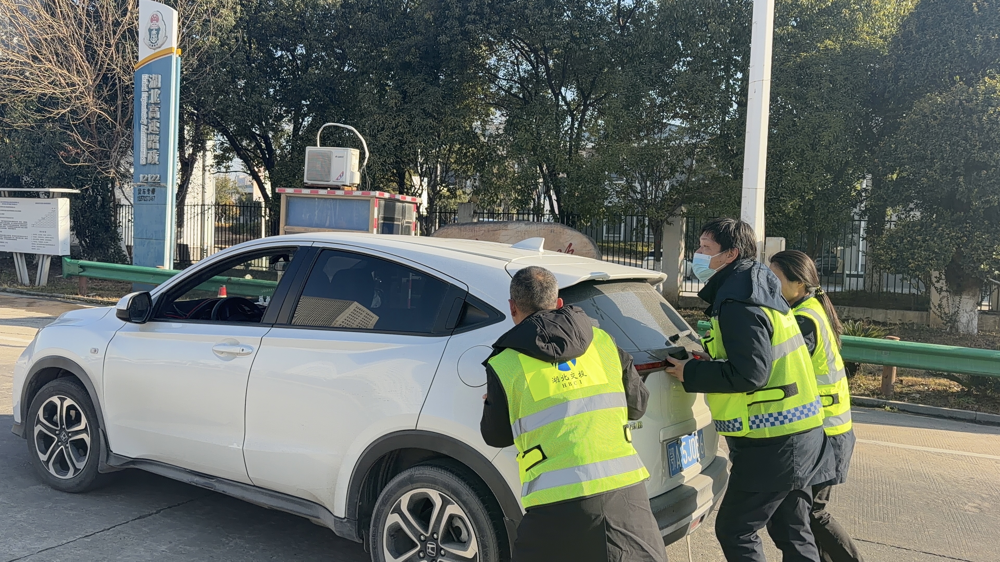 当日15时许,正值春运车流高峰,司机李先生驾驶载有5名家人的返乡小客车,驶出红安收费站收费广场后突然熄火。李先生多次尝试重启车辆均未成功,焦急万分之际,正在广场开展日常巡查的收费站工作人员及时发现这一情况,当即召集“映山红”志愿服务团队赶赴现场处置。