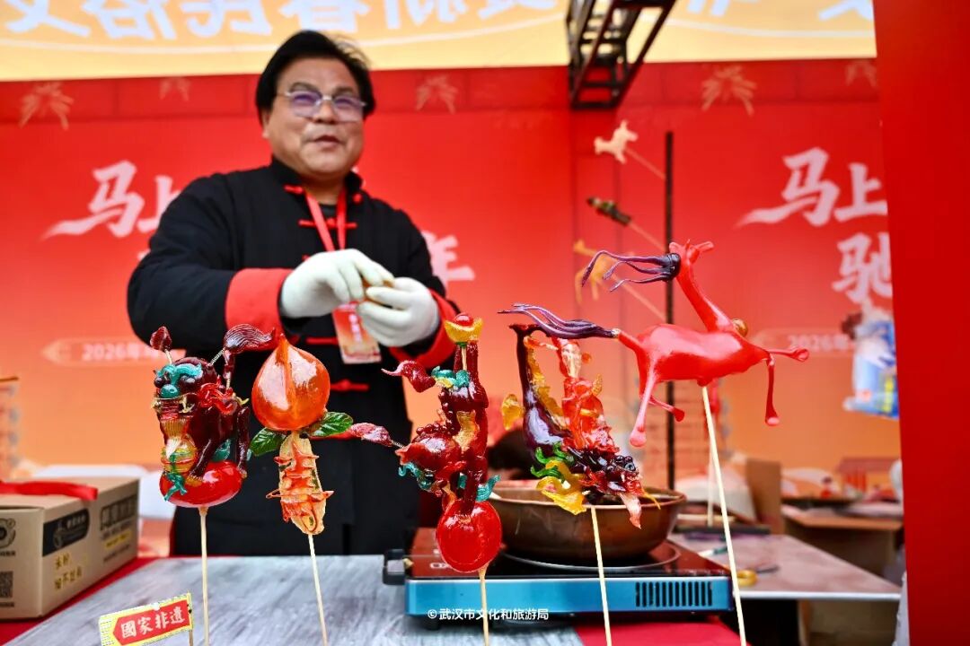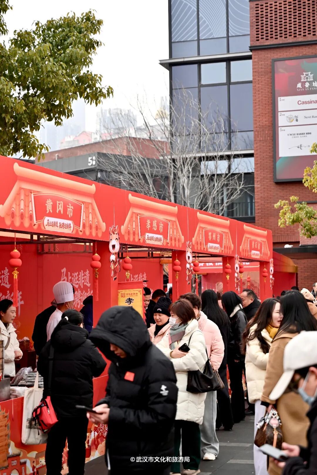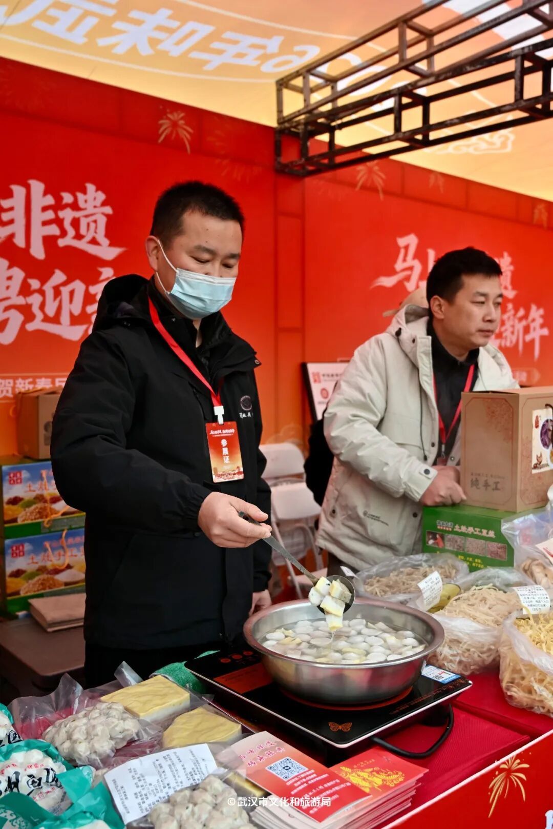 围绕年俗主题打造具有年节氛围的特色市集,设置非遗好物、非遗工坊、非遗文创三大板块,邀请武汉1+8城市圈非遗传承人参与。现场还有非遗类老字号、餐饮企业进行现场美食制作,并开展试吃促销及售卖活动。