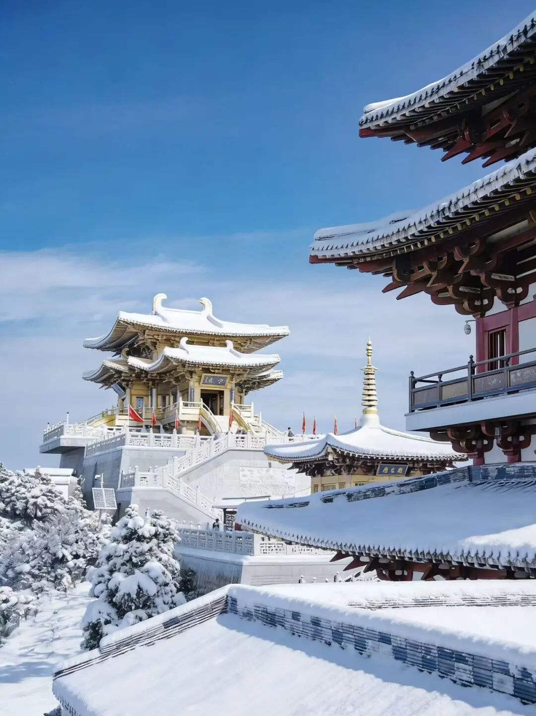 ·推荐景色:金顶古建雪景、山间雾凇冰挂