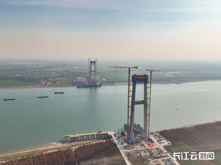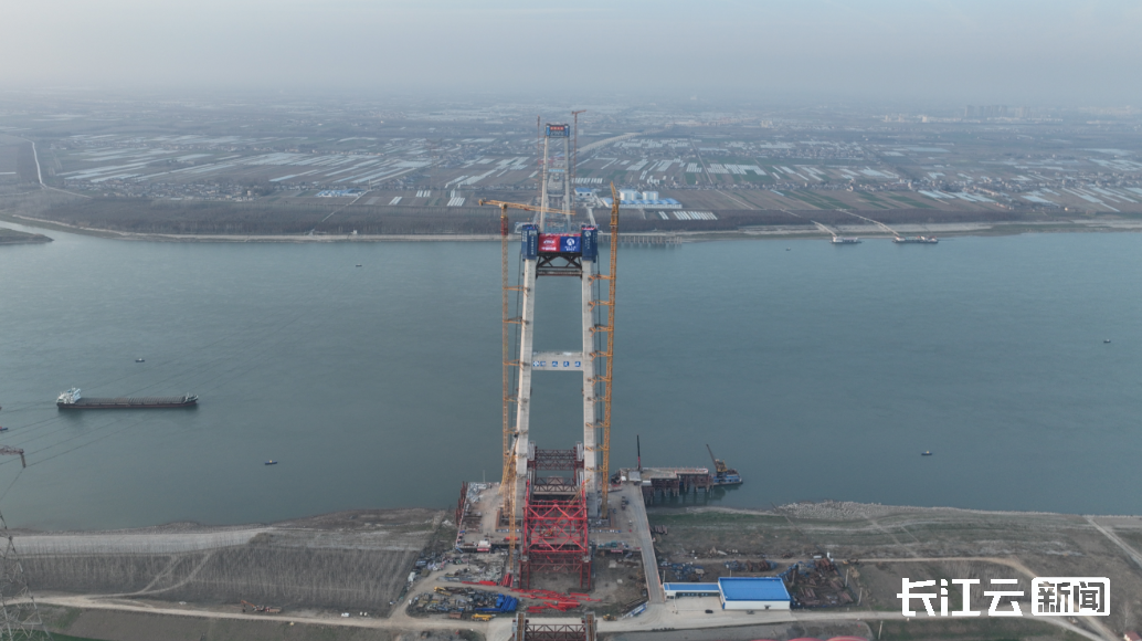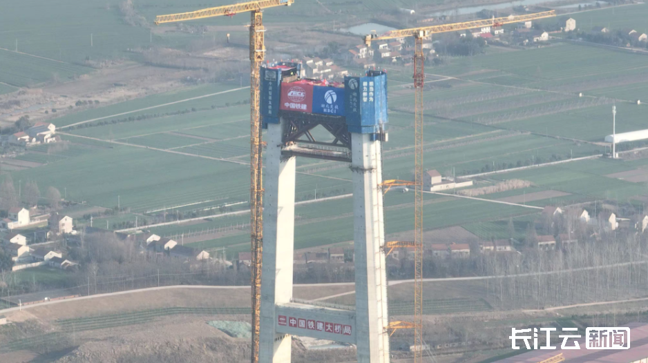“一桥三用” 荆州李埠长江公铁大桥主塔封顶