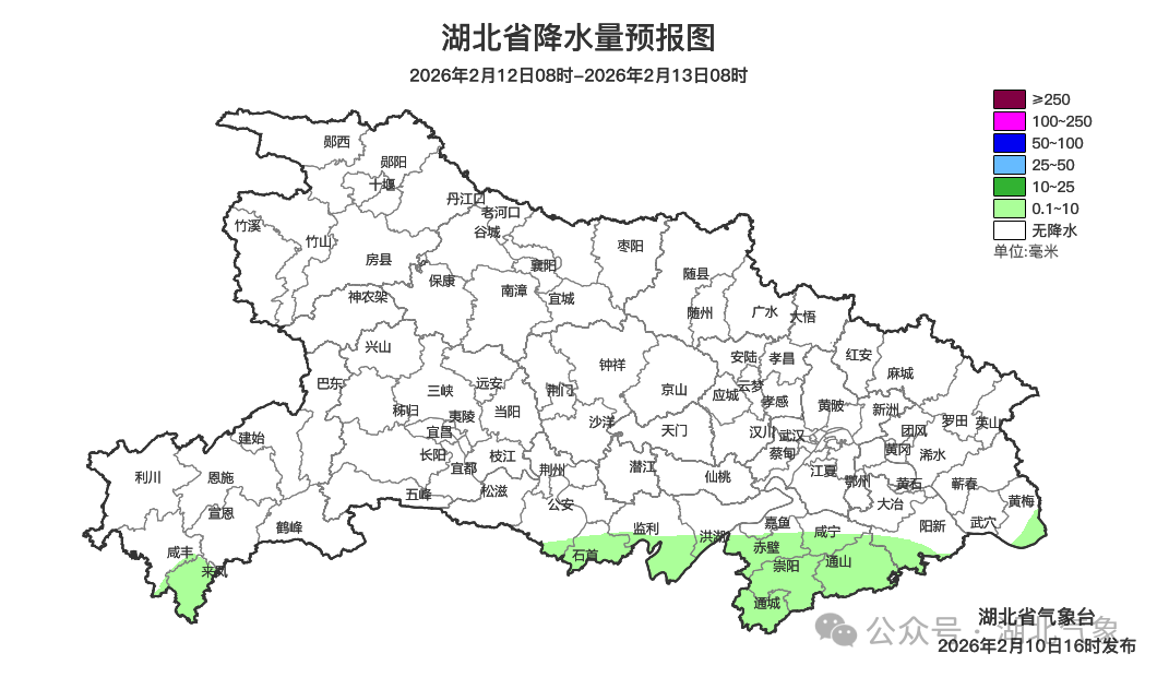 2月12日08时-13日08时,鄂西南南部、江汉平原南部、鄂东南多云到阴天,夜间有短时小雨;其他地区多云。最高气温15~20℃,最低气温4~9℃,偏南风2到3级。