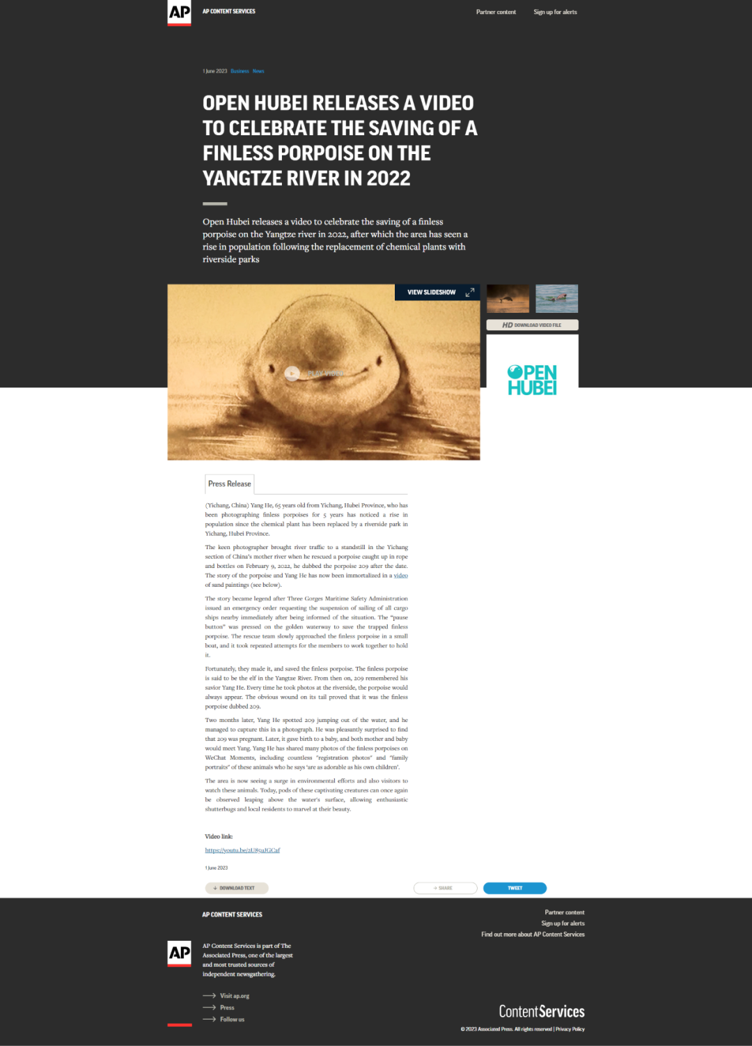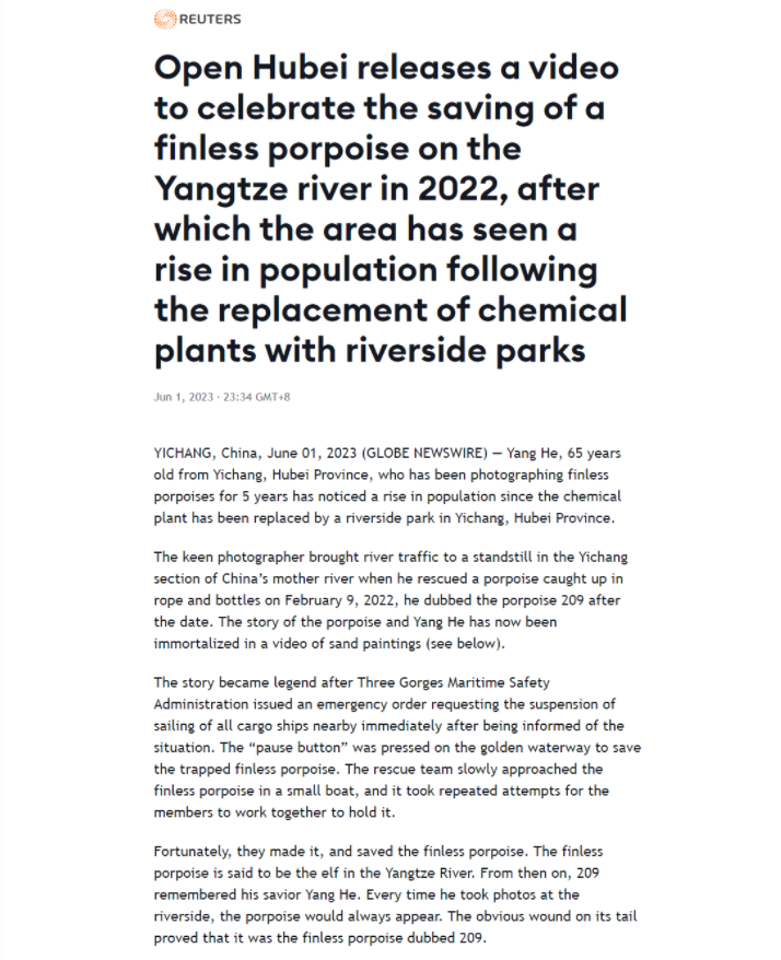 《老人和江豚》被美联社、路透社转载