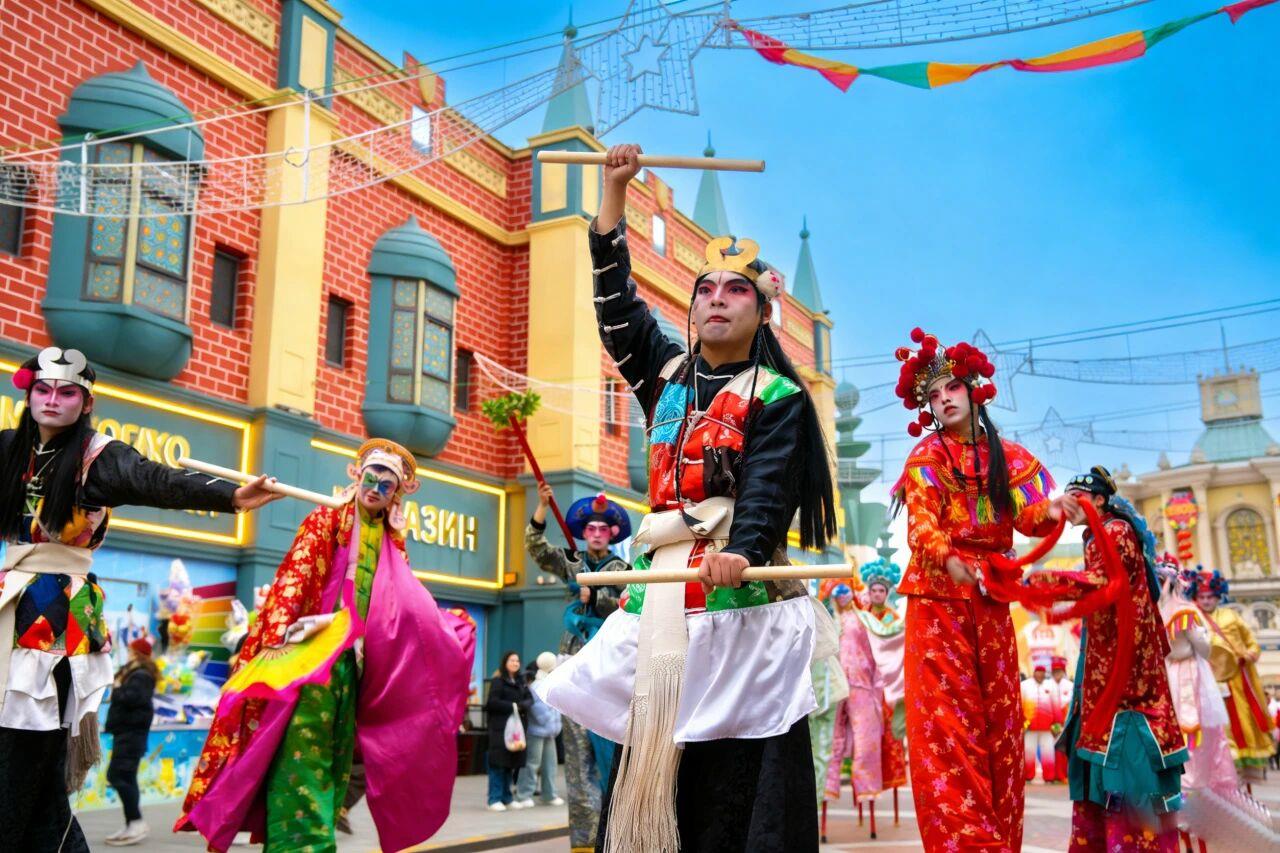 同庆街-颐和园东宫门会场以“骏马启新·同庆华年”为主题,通过《十骏图》艺术装置、花卉灯会、文化市集和歌舞杂技秀;