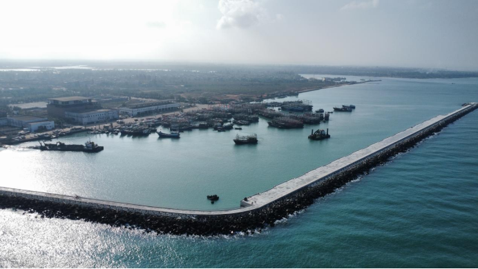 临高县武莲渔港防波堤修复工程防波堤工程全面完工
