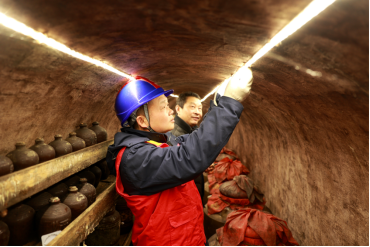 走进16米长的酒窖,几十口陶缸整齐排列,宛如静默的石碑,窖内温暖如春,与外界的寒意形成鲜明对比。谢世华常常蹲下身,将耳朵贴近缸壁,仔细聆听酒醅发酵的细微响动——这是他坚守多年的习惯,也是对每一滴酒的敬畏。“自2021年酒窖完工,存酒量一路涨到1.7万余斤,要是没有稳定的电力,保温跟不上,酒的品质根本没法保证;还有这么多的酒想靠人力搬下来都难。”他说。