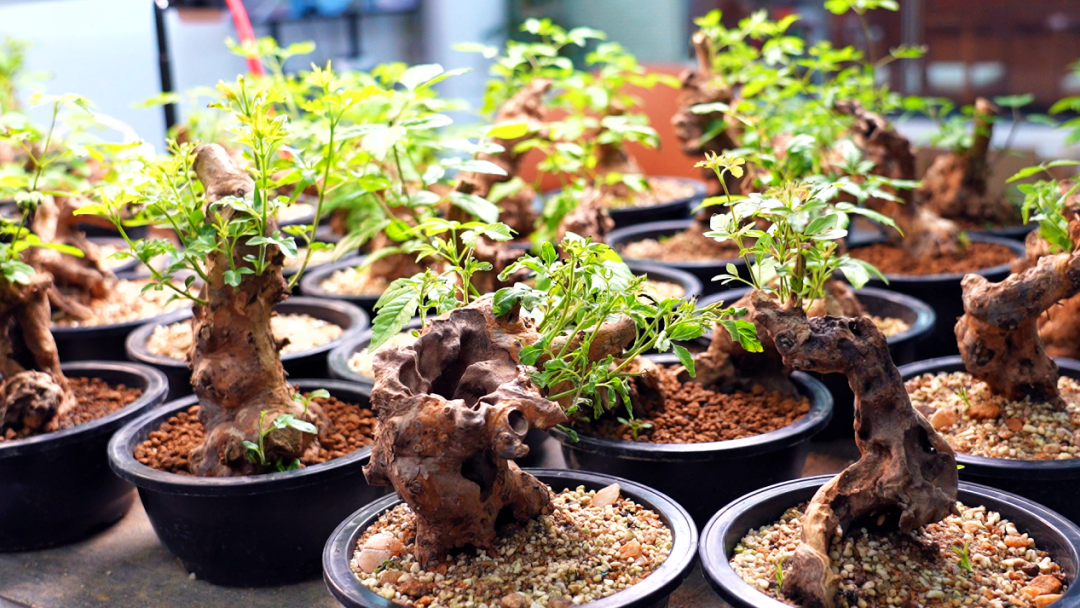 时间回到2017年,李坤率先涉足常规绿化苗木种植,却很快陷入行业同质化竞争的困局,发展步履维艰;2019年,他果断调整方向,转战大型盆景培育,不料又因产品价格偏高、物流运输受限等问题受阻;2023年,李坤敏锐捕捉到小微盆景的市场风口,毅然开启第三次转型,深耕小微盆景培育赛道。