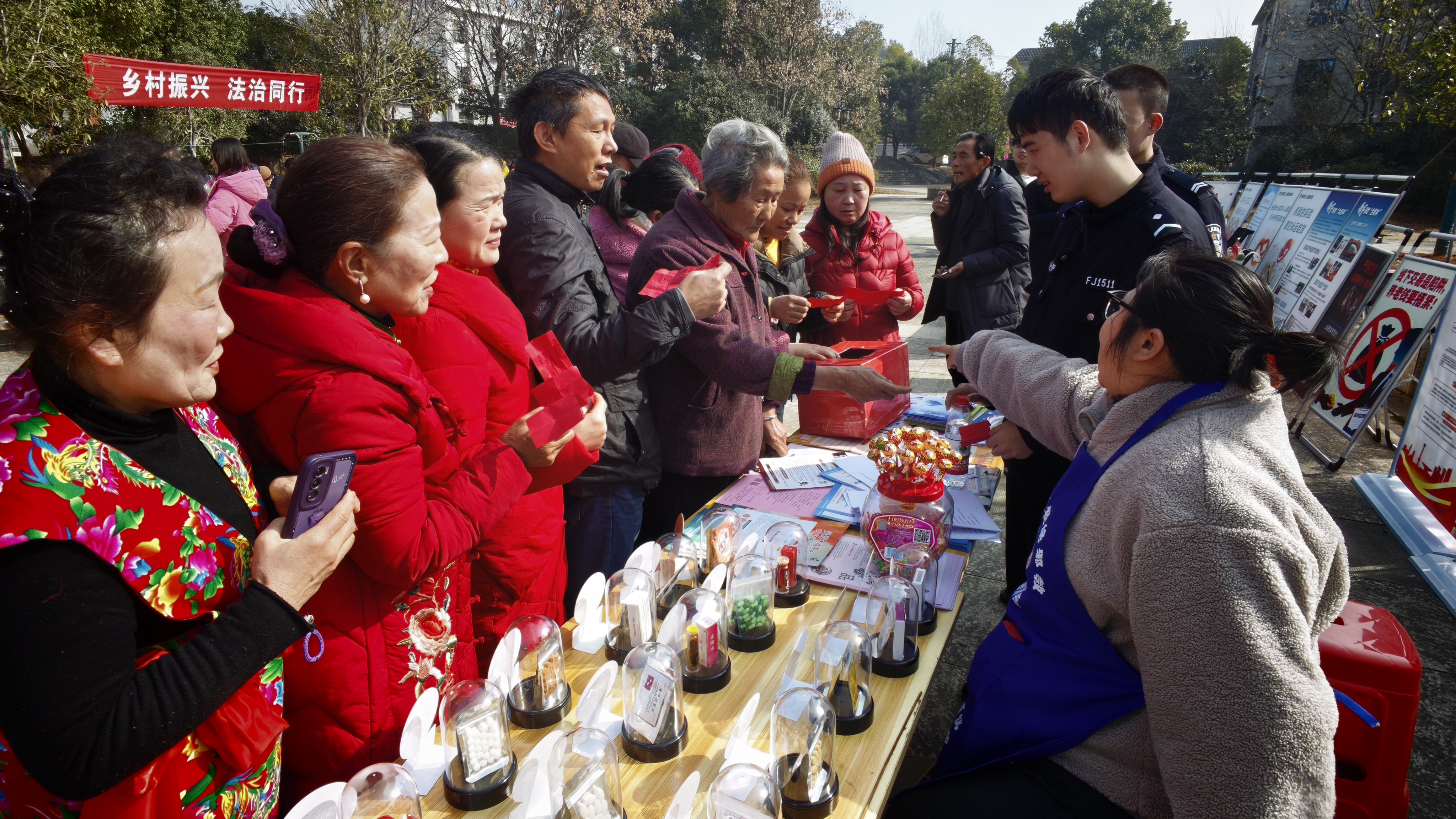 活动现场还设置了采风体验区、法治宣讲区等特色区域,让年货节既有“烟火气”,又有“文化味”和“安全感”。采风体验区里作家协会、摄影协会的创作者们走进高桥古桥、红色教育基地等地,用镜头和文字记录高桥的秀美风光和乡村新貌;法治宣讲区里,检察院、消防救援局、派出所的工作人员设立咨询台,开展未成年人保护、反诈防诈、消防安全、禁毒等知识宣传,现场演示消防器材使用方法,发放宣传资料,让村民在赶集中学法、懂法、用法。