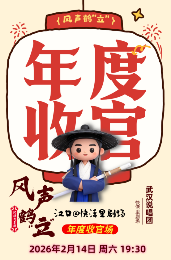 沉浸式喜剧《风声鹤“立”》,以“武侠喜剧+地标文化”为创作核心,讲述明嘉靖年间围绕“黄鹤图”展开的江湖智斗故事,还融入了快板、口技等曲艺元素。2月14日将迎来年度收官场,演出现场还为观众准备了随机惊喜小礼品。