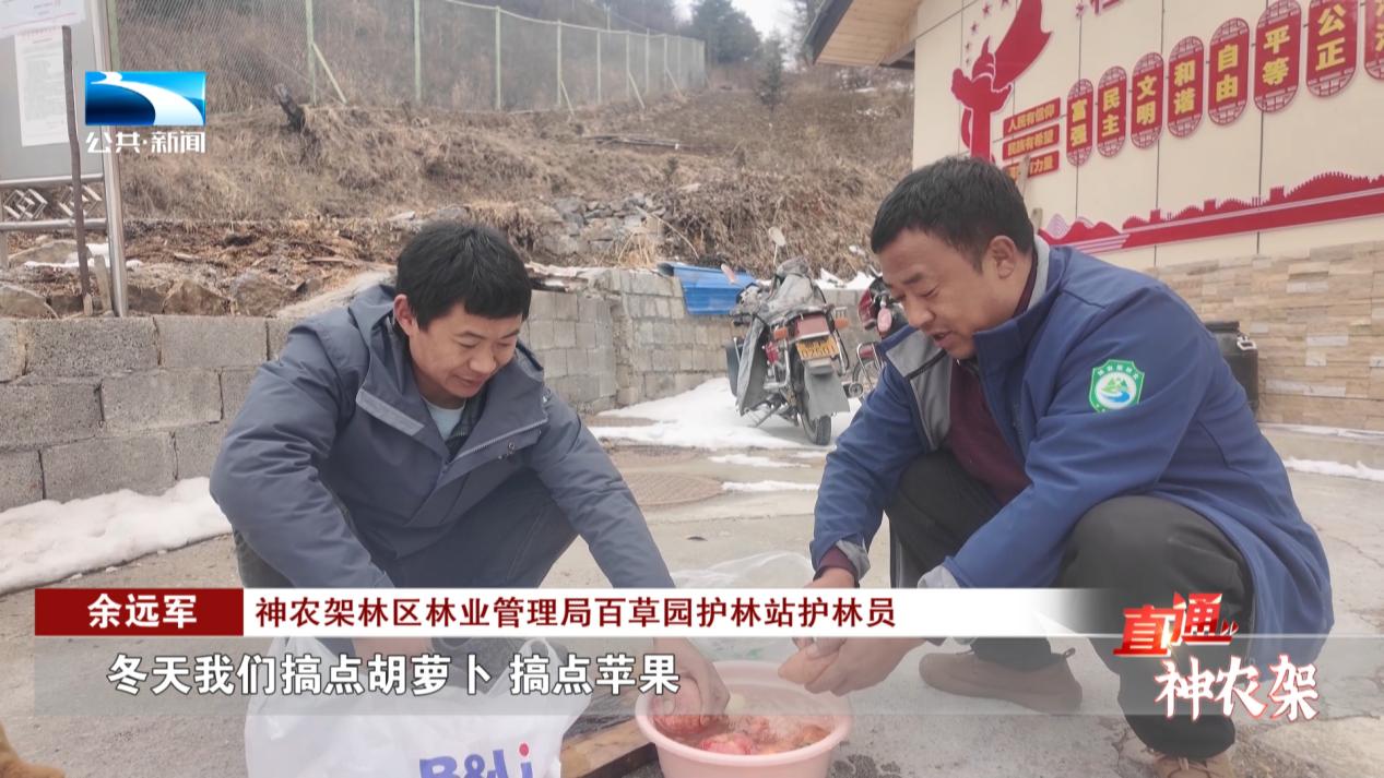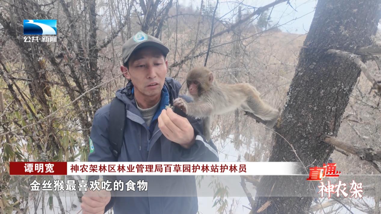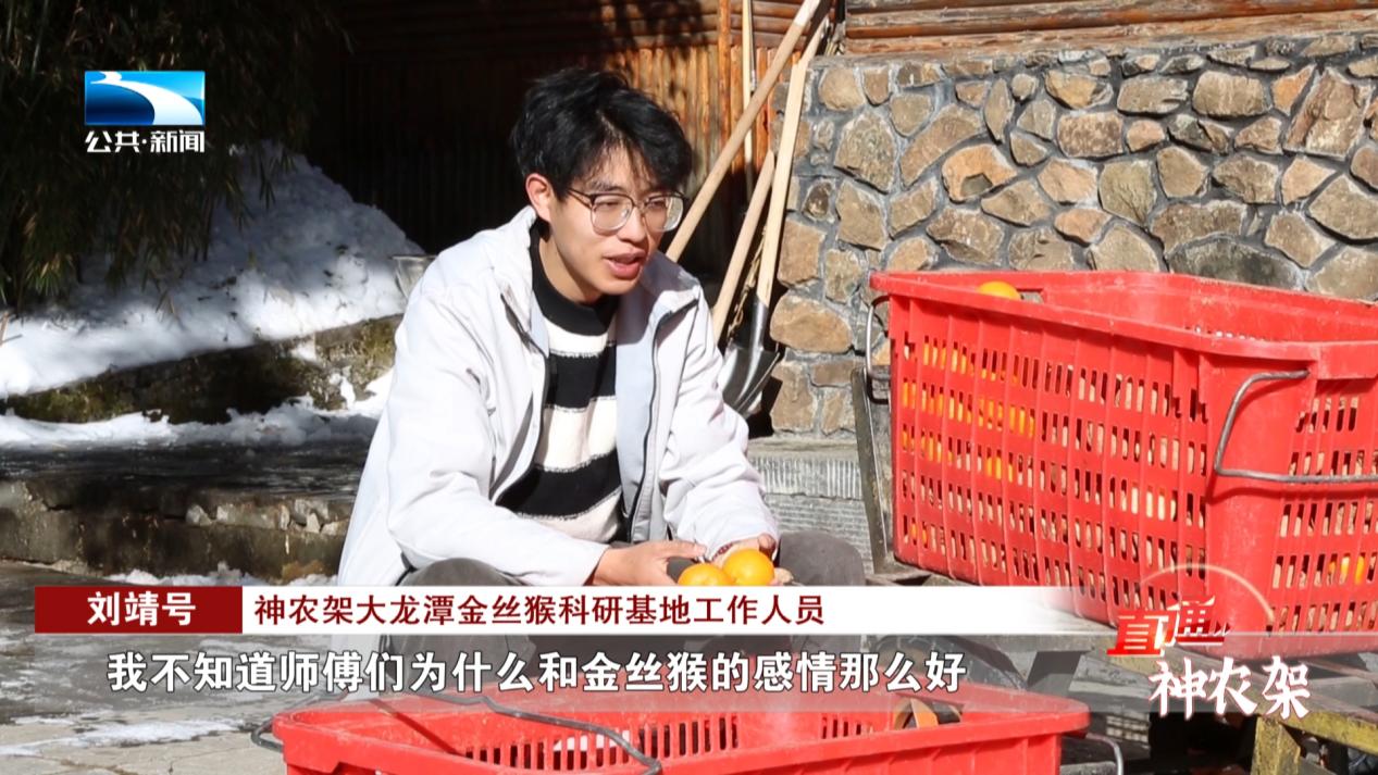 神农架林区林业管理局百草园护林站护林员 余远军:冬天我们搞点胡萝卜,搞点苹果,给猴子补充一下维生素C,都给它改下刀,让它们吃的好些。