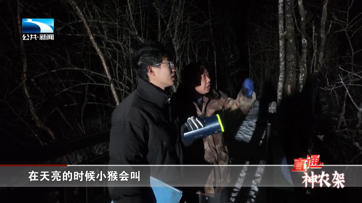 神农架大龙潭金丝猴科研基地工作人员 方吉喜:我们现在为什么要去这么早?有时候冬天要防止它(金丝猴)又跑到另外一个地方,因为冬天下雪的季节,有月光比较亮,它(金丝猴)晚上有时还有夜行的时间。