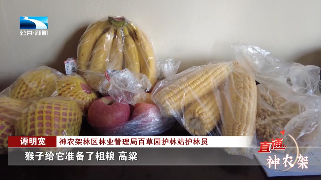 神农架林区林业管理局百草园护林站护林员 谭明宽:现在临近春节了,我们救护站那些猴子、金雕,我们都准备了充分的食物,猴子给它准备了粗粮、高粱,还有苹果、香蕉,其它的金雕我们准备了活鸡,准备好了也让它们过个好年。