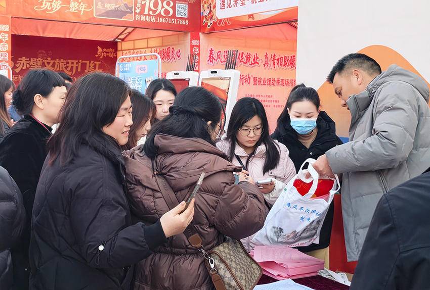 2月12日至13日,赤壁市人社局在赤壁人民广场举办2026年“春风行动”第二场招聘会,以“线下主会场+线上云招聘”双模式搭建对接平台,94家优质企业组团“送岗”3085个,为节后复工复产注入动能,让城乡劳动者“家门口就业”。