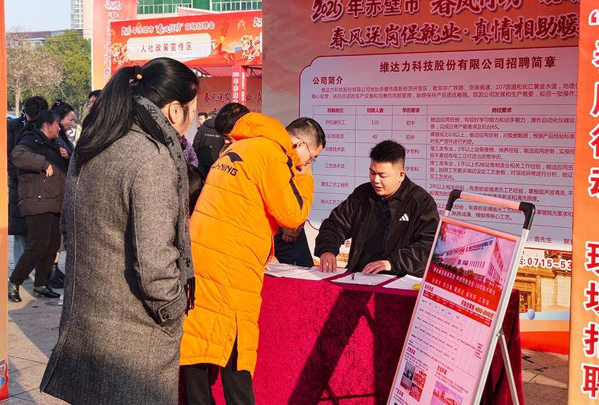 湖北赤壁:广场搭起就业桥 “春风”送岗三千多