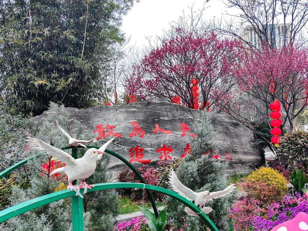 与此同时,各公园的春节氛围布置与文化大餐也已备妥。解放公园1号门广场,灵动可爱的梅花鹿、和平鸽雕塑穿梭于花丛;主园路上,串串红灯笼高高挂起。据市园林和林业局公园管理处统计,全市超百座主要城市公园进行了氛围营造,其中23座公园准备了丰富多彩的节日文化活动。