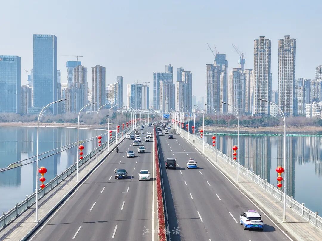 武昌东湖路中分带化身“鲜花飘带”,沙湖大桥上红果累累的富贵子寓意“红红火火”,光谷高新大道、新洲、江夏等地的主干道也各具巧思,以百日草、孔雀草、红叶甜菜等时令花卉,勾勒出不同色彩板块,使市民游客春节出行有繁花相伴。