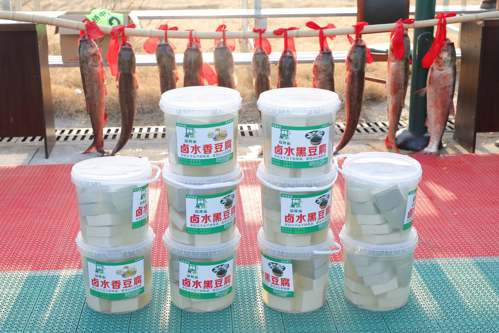 四支队伍——泉井沙城湖湾组、柯家巷湾组、驻村工作队疾控中心队及东道主泉井湾队,通过循环赛激烈比拼,决出前两名进入决赛。最终,冠军队伍每人赢得一条十几斤重的大鱼,这些鱼就来自村口风水塘;亚军每人收获一桶泉井湾特色黑豆腐。其余参赛队员和参与者均获得纪念奖一份。奖品虽“土”,却饱含乡情——由湖北长乐泉井农业科技有限公司、泉井食品有限公司倾情赞助。