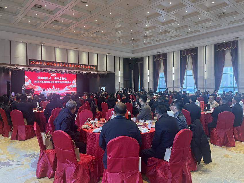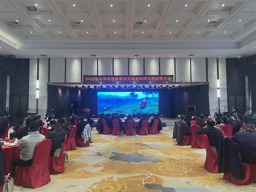 2月14日,正值马年新春佳节即将来临之际,大悟县隆重举行2026年新春茶话会暨楚商回乡招商推介会。200余名返乡楚商代表、商会及民营企业家代表、优秀校友代表、新农人代表及各界嘉宾欢聚一堂,共叙乡情友谊,共商发展大计,共绘发展蓝图,开启一场“双向的奔赴”。