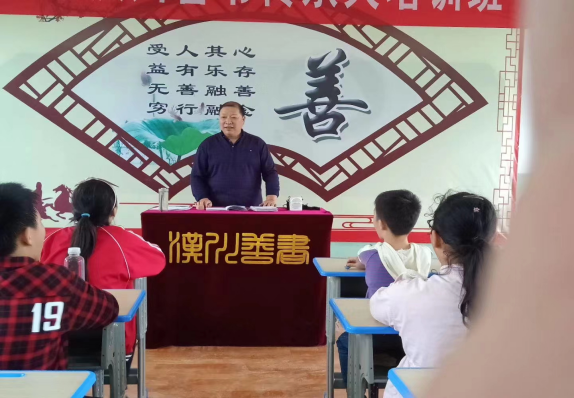 熊乃国在汉川仙女山一小汉川善书传承基地授课
