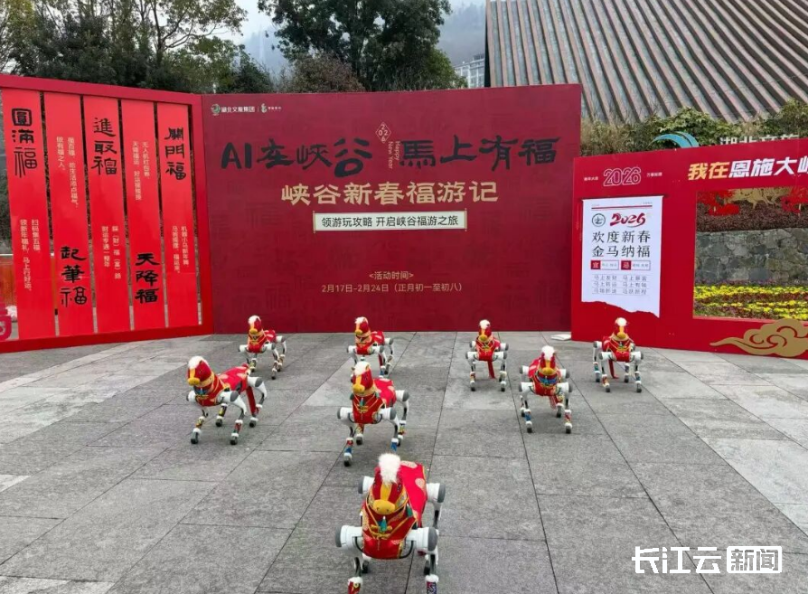 恩施大峡谷成为新春打卡热门地,2月17日,景区新春活动在新游客中心广场盛大启幕,活动将持续至正月初八。现场非遗展演轮番登场,让游客近距离感受传统民俗的独特魅力;八匹灵动可爱的机械小马萌趣迎宾,成为广场上的亮眼风景。