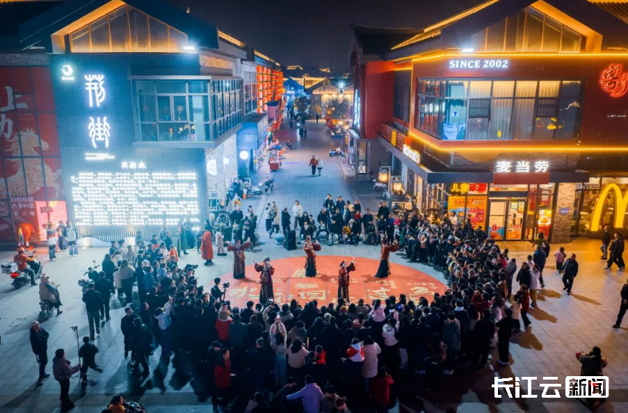 荆街则以三国文化为依托,开启2026马年新春盛宴,非遗火武铁花秀绚烂夺目,策马三国荆州秀惊艳亮相,新春版流动舞台好戏连台,财神快闪、趣味互动游戏轮番上演,年味与浪漫齐聚,让游客沉浸式体验三国新春的别样风情。