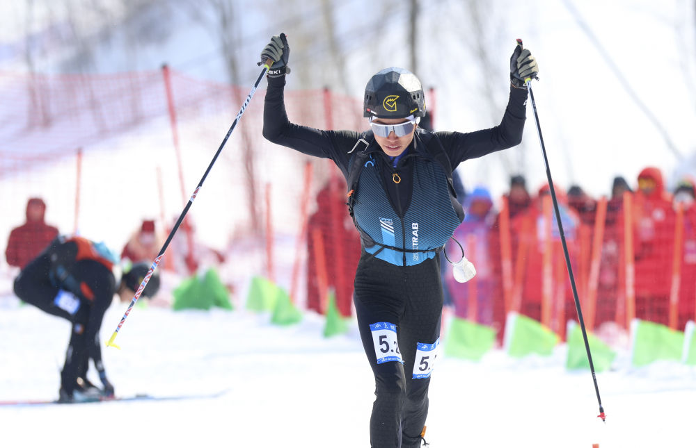 布鲁尔在第九届亚冬会滑雪登山混合接力决赛比赛中。新华社记者 杨青 摄
