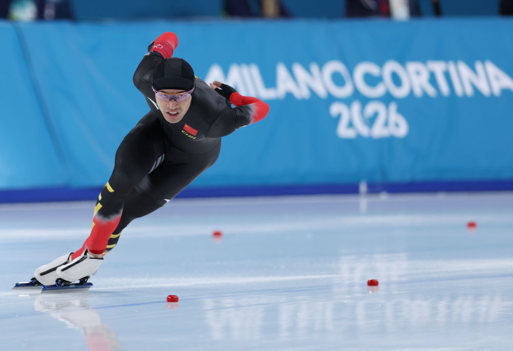 2月11日,宁忠岩在速度滑冰男子1000米决赛比赛中。新华社记者 杜潇逸 摄