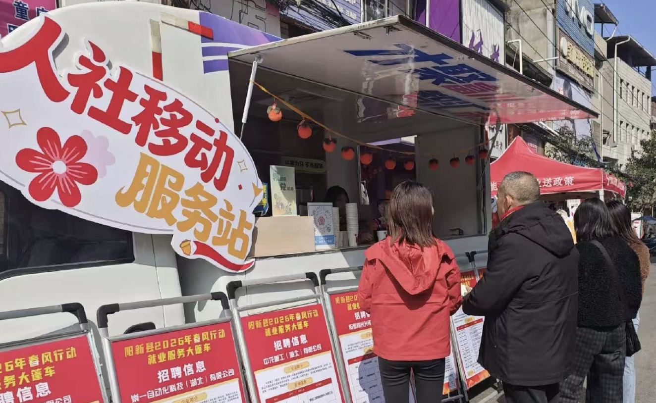 2026年春节期间,湖北省黄石市阳新县人力资源和社会保障局再次启动“就业创业服务大篷车”专项行动,以“春风促岗送就业 真情相助暖民心”为主题,将岗位信息、政策礼包和就业服务送到群众家门口,为返乡人员和本地求职者送上一份实实在在的“新春就业大礼”。