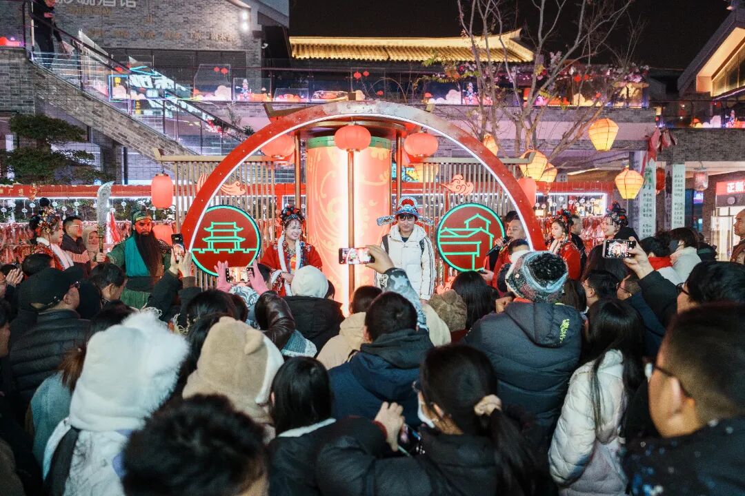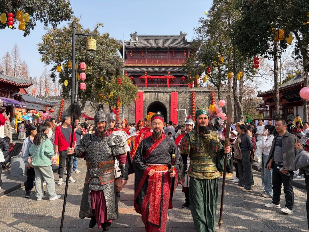“荆州十二时辰”全新升级,荆州古城东门、老南门、大北门、玄妙观灵剑山、纪南文旅区五大片区联动,全力打造全天候、流动式、沉浸态、业态多元的新春文旅体验和消费场景。荆州古城瓮城舞台上演《三国穿越·古今同春》主题演出,古城景区内三国英雄NPC成为新晋合影达人,吸引国外游客驻足围观、合照打卡。