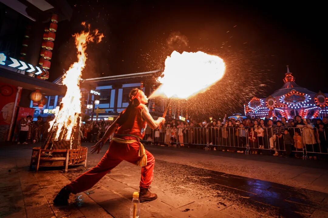 沙市码头升级大慈街、吉祥巷等节庆氛围布置,以国潮飞天秀、舞龙舞狮、财神民俗、花车巡游等方式,营造浓郁节日氛围。沙市五一路化身“非遗焕新 马年潮玩”舞台,融合非遗展演、篝火狂欢夜、老街NPC赠福等特色环节,引爆街区夜间经济。