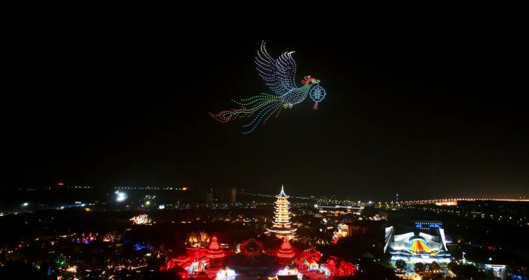 古城东门上演“楚凤献瑞”开城仪式、古风巡游、荆风楚韵灯光秀、开船仪式;南门打造新春百姓大舞台、骏马/财马/福马三连快闪秀、新春逛吃市集,北门推出三国早市、餐秀《三国宴》、《三国英雄路》实景短剧、灵剑山仙侠奇幻游秘境寻宝、仙侠NPC互动等。荆州古城景区“凤舞九天”无人机秀视觉盛宴震撼上演,千架无人机以荆州古城为底色、璀璨夜空为画布,绘就一幅恢弘的新春画卷,成为荆州新春文旅热门打卡场景。