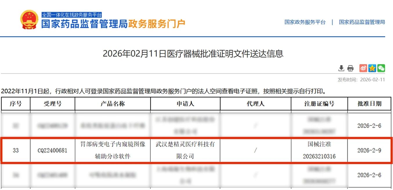 这是国内首个聚焦胃癌领域的AI辅助诊断三类医疗器械认证,也是楚精灵继2023年获批下消化道AI三类医疗器械注册证后的又一重大突破。此次获批,标志着楚精灵成为全国首个上、下消化道AI产品均获得国家三类认证的企业。
