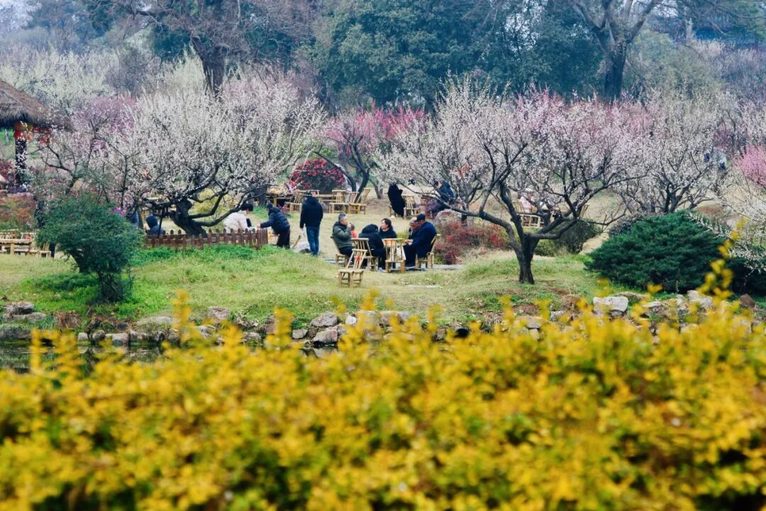 春节正值梅花盛花期,东湖梅园里暗香浮动。