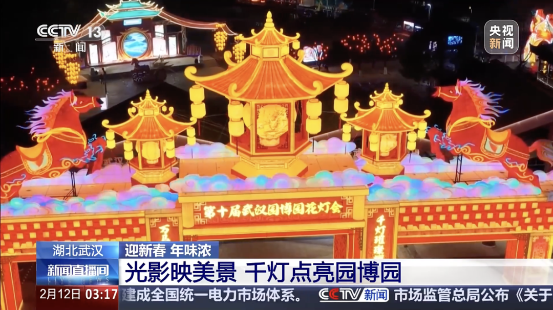 2月17日大年初一,《晚间新闻》以《湖北武汉:木兰灯海映盛世 民俗活动庆丰年》为题,聚焦木兰不夜城,展现璀璨夜景。