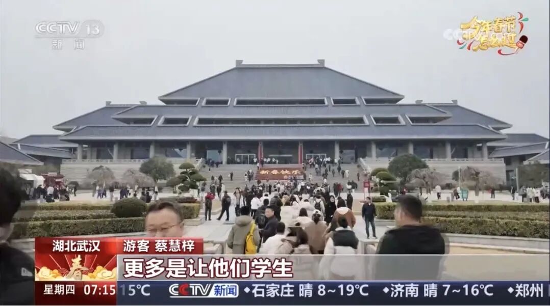 2月19日大年初三,CCTV-13《朝闻天下》,以《今年春节怎么过——开启春节新体验 畅享时代新活力》为题,在湖北省博物馆采访武汉游客,接下来她还将去长江大桥看看。