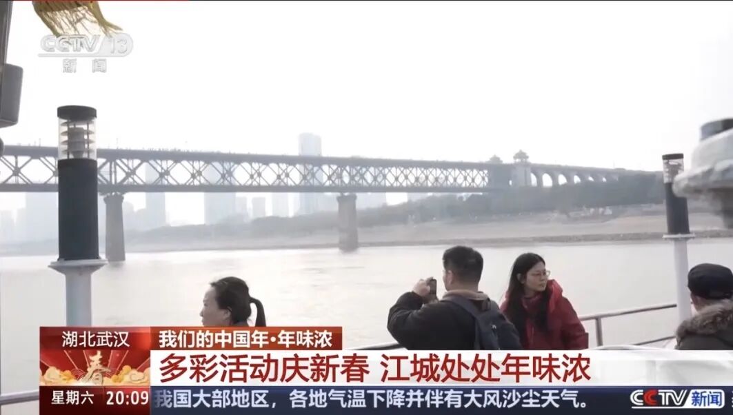 2月18日大年初二,CCTV-13《正月里来是新春》两度聚焦武汉,采访游客如何在武汉欢度春节。游客们登黄鹤楼祝福打卡,去江滩、园博园领略春节热闹气氛。