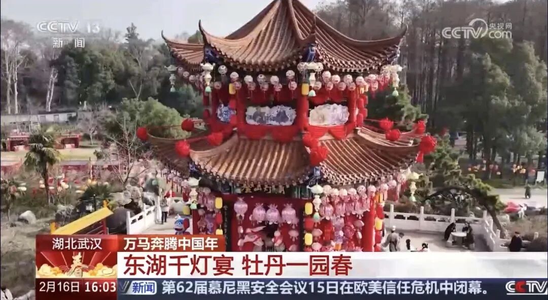 2月16日除夕夜,CCTV-13《万马奔腾中国年》,以《东湖千灯宴 牡丹一园春》为题,聚焦东湖牡丹园新春游园会。