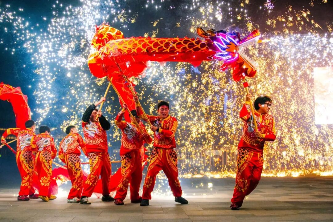 今年春节,甘露山文创城、木兰草原、木兰不夜城三大顶流景区联合推出“木兰度假铁三角景区联票”,叠加湖北文旅消费券后最低50元即可三天内无限次畅游,吸引全国各地游客前来。游客看打火花,春晚同款“武BOT”机器人,春节气氛火热。