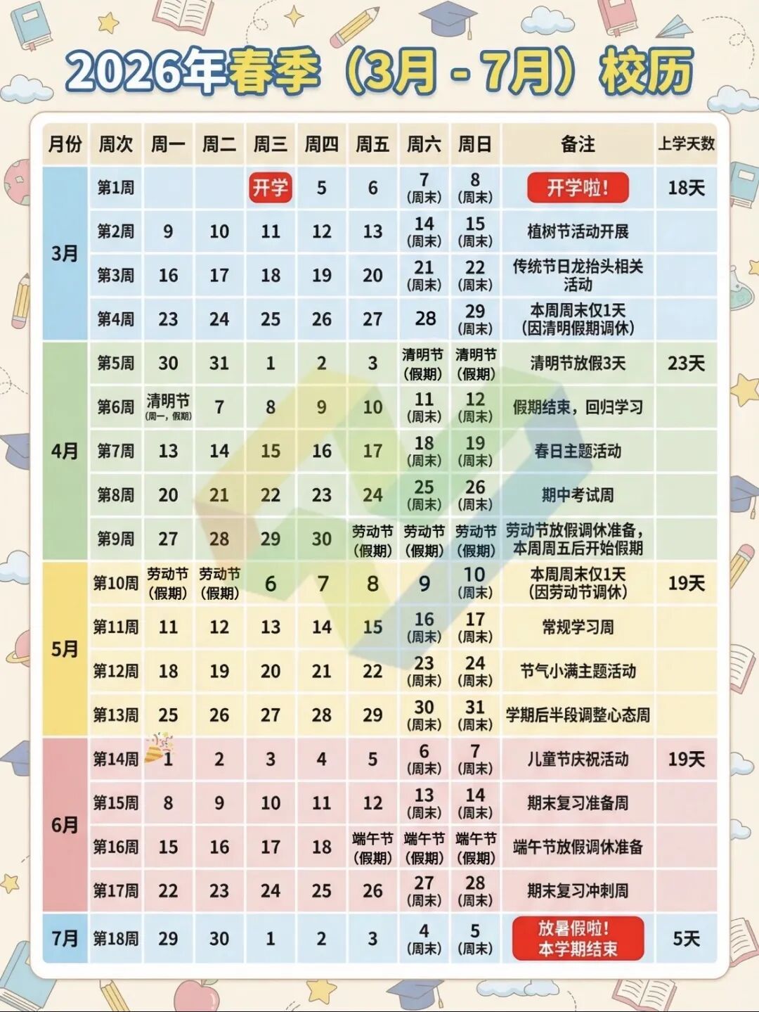 2026年春季学期(第二学期)后续关键节点也已明确,除统一开学时间外,下学期期末考试及六年级毕业考试安排已同步公布。