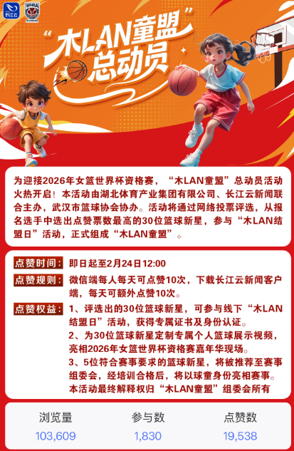 从集训场到赛场,中国女篮姑娘们春节无休备战,只为在武汉主场交出满意答卷!而“木LAN童盟”的少年们,正以篮球为媒,用青春热血为女篮助威,让 “主场优势” 不止于呐喊,更在于薪火相传的体育精神。