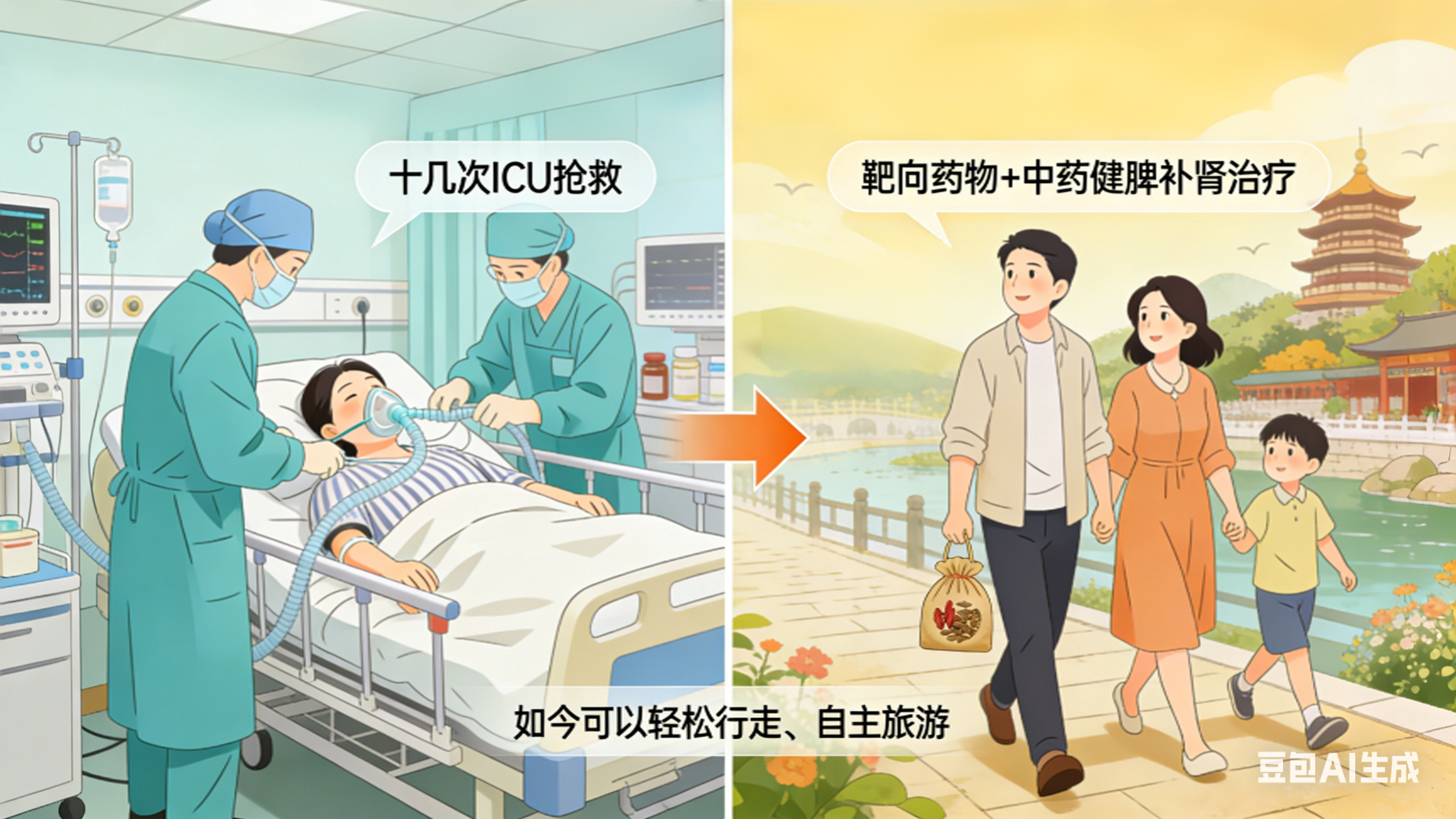 甚至对于合并妊娠的难治性患者,在经历了十几次ICU抢救后,通过靶向药物联合中药健脾补肾治疗,如今已能轻松行走、自主旅游。