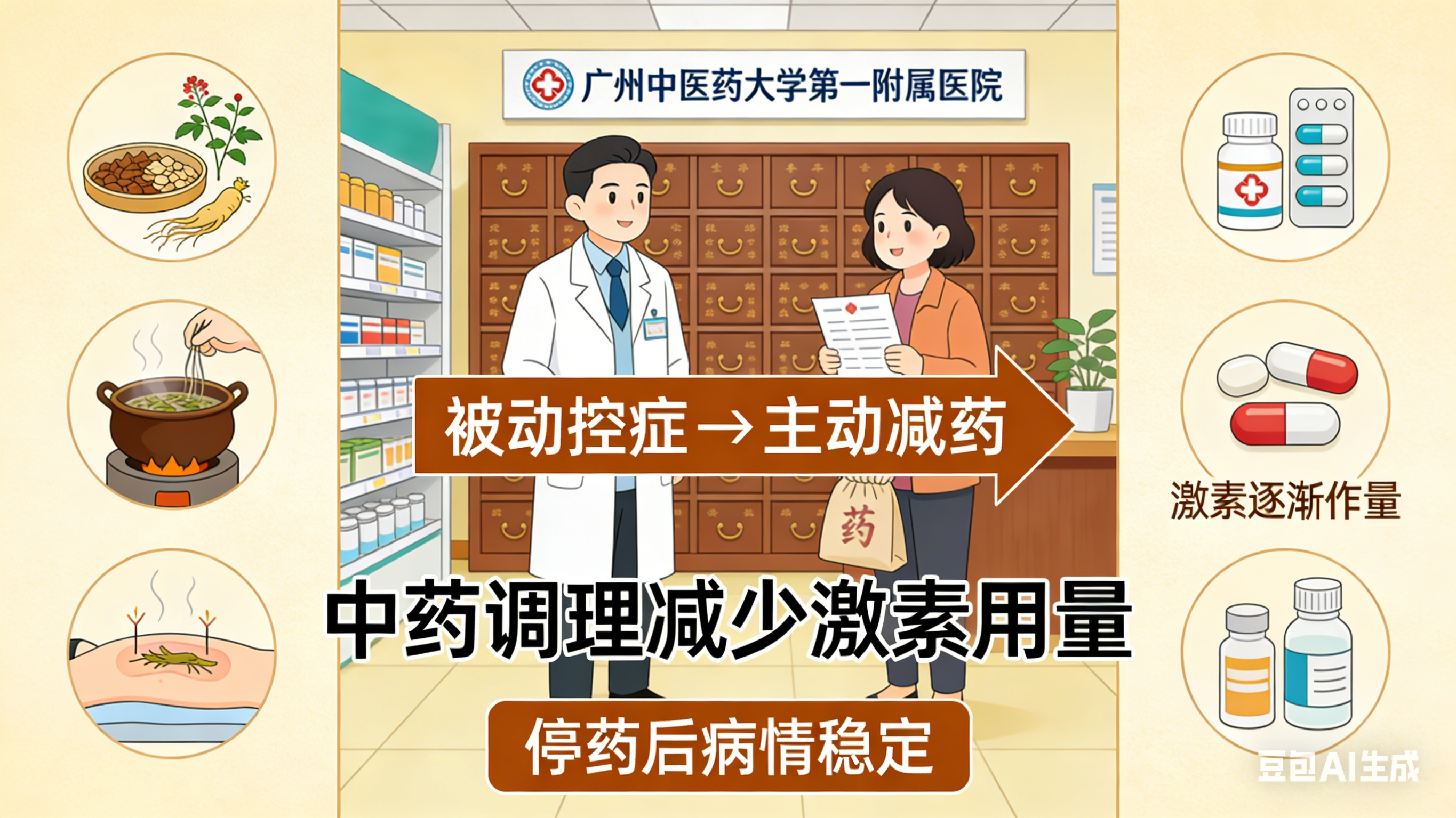 广州中医药大学第一附属医院探索的中西医结合模式,正实现从 “被动控症” 到 “主动减药” 的转变。通过中药峻补脾胃、调节免疫,许多患者激素用量逐步减少,甚至停药后仍保持稳定。