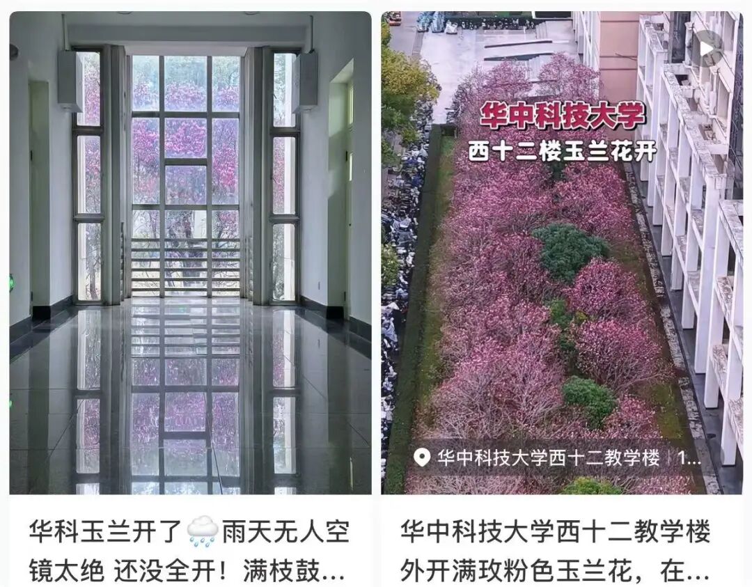 华中科技大学的玉兰开在教学楼边