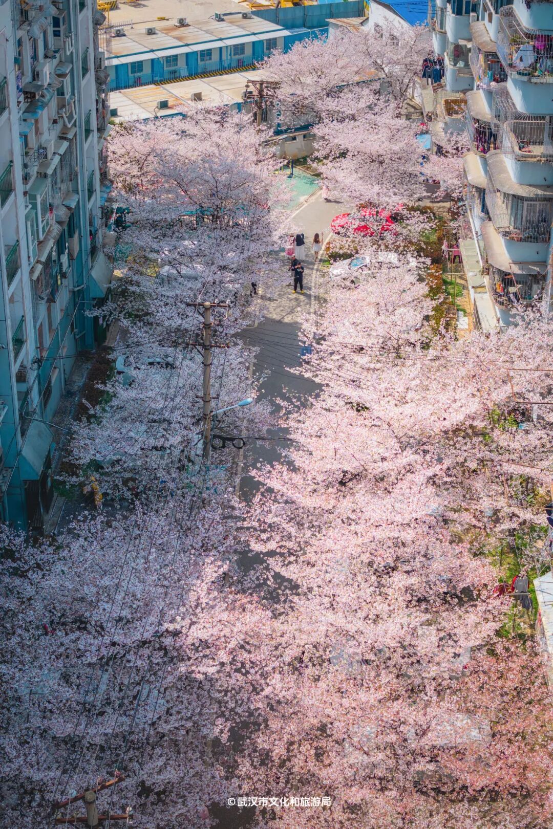 汉阳的老社区有花瓣铺就的地毯