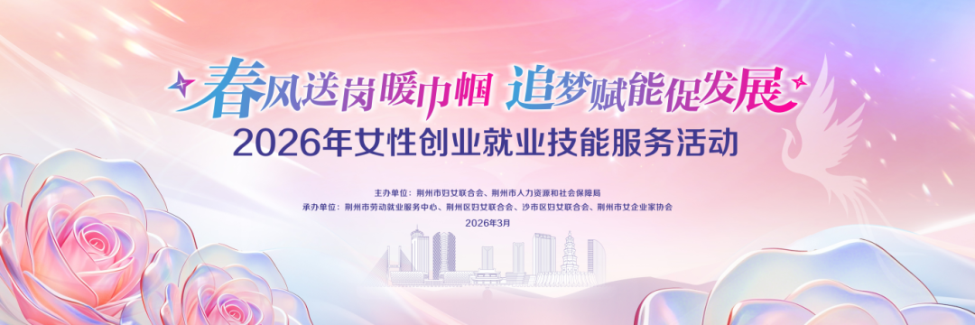 在第116个“三八”国际妇女节来临之际,由荆州市妇女联合会、荆州市人力资源和社会保障局联合主办的“春风送岗暖巾帼 追梦赋能促发展”2026年首场女性创业就业技能服务活动即将拉开帷幕!